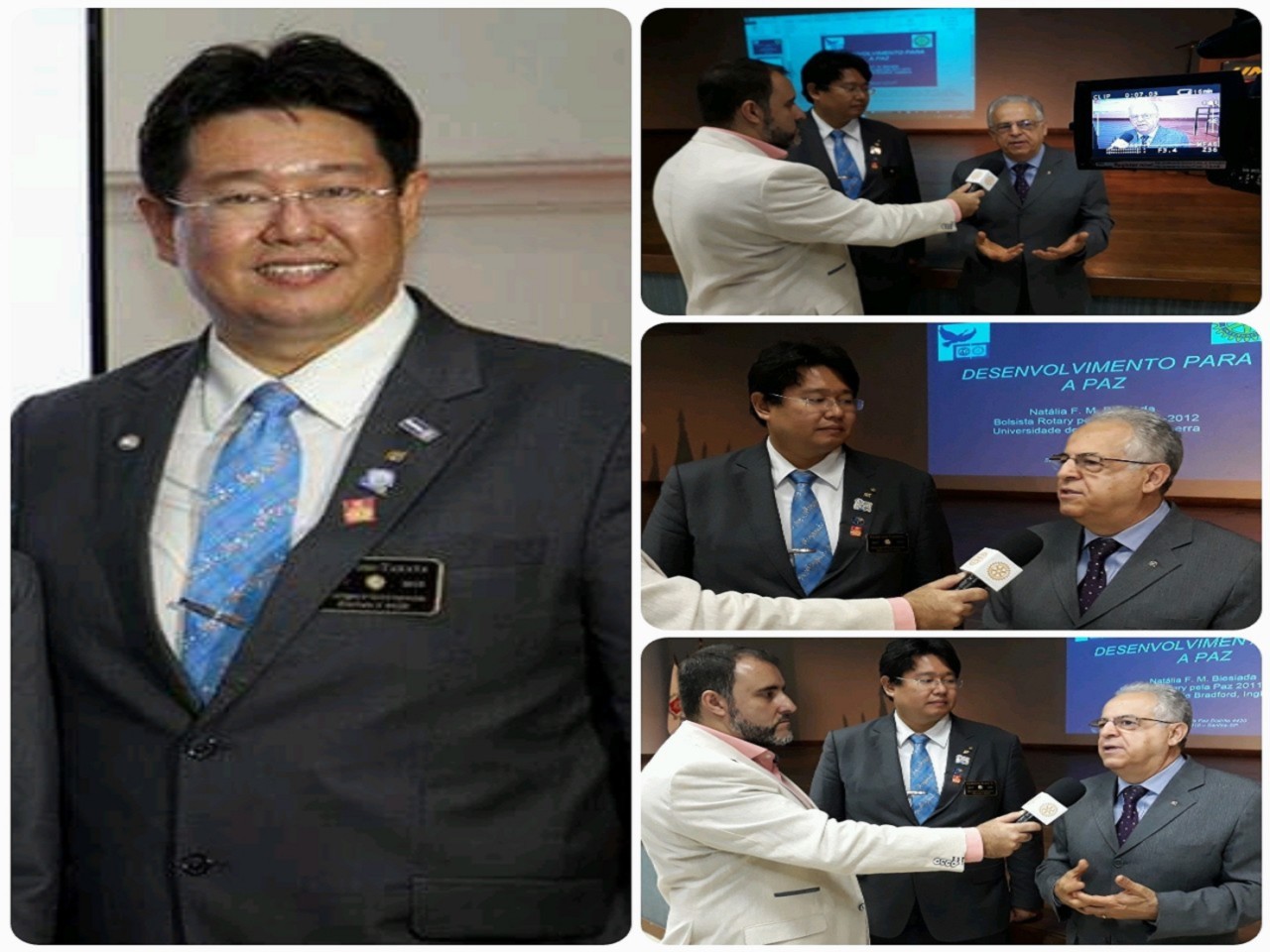 Entrevista de Claudio Takata (ao centro), Governador do Distrito 4420 do Rotary International, e de Samir Khoury (à dir.), coordenador das Bolsas Pela Paz do Distrito 4420, ao programa Rotary na TV, durante o Seminário da Paz do Distrito 4420 do Rotary International. O evento foi realizado na manhã deste sábado (24), na UNIP Campus II Rangel, em Santos/SP. O encontro contou com a presença de rotarianos, empresários, estudantes, professores, palestrantes e representantes da sociedade civil. Foram debatidas a cultura de paz e as bolsas de estudos dos Centros Rotary pela Paz no mundo inteiro. Obrigado!
