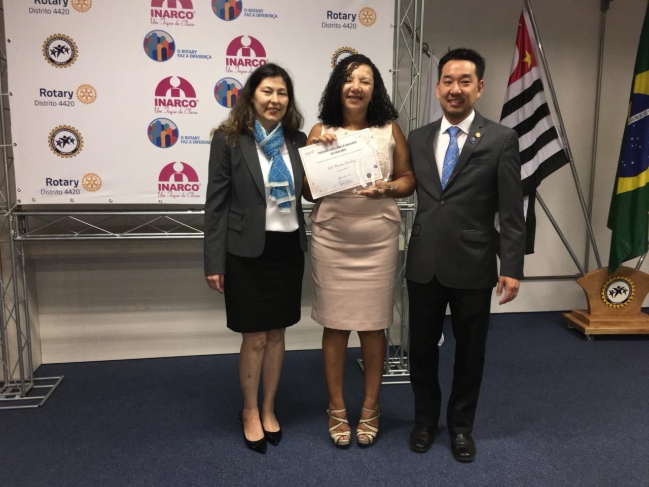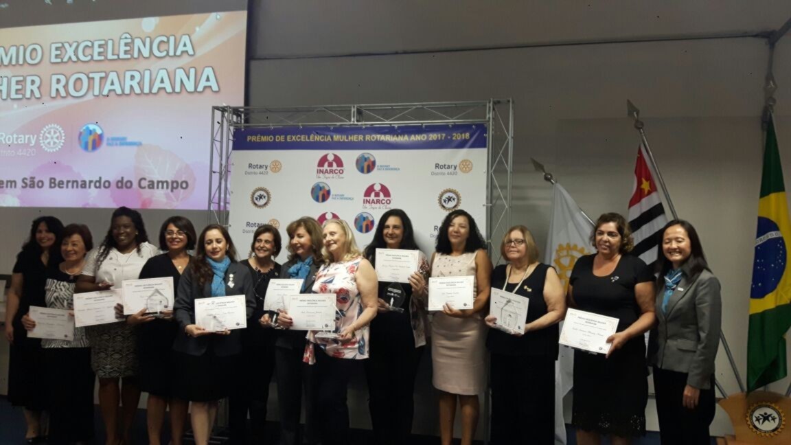 No dia 24 de março a partir das 19h30 no CAMP de São Bernardo do Campo à R. Suécia, 500 foi realizado o Primeiro Prêmio Excelência Mulher Rotariana, instituído nessa gestão, esse prêmio busca prestigiar a mulher rotariana. Foram premiadas 17 mulheres rotarianas de destaque no Distrito 4420, com destaque profissional ou destaque na área de ajuda social. Cada clube da Área 1, deveria indicar a sua candidata, apenas três clubes o fizeram, houve uma votação por e-mail e a nossa indicada foi a escolhida ? CELI PAULINO CARLOTA, companheira do Rotary de São Paulo ? Saúde. Nossos parabéns a todas as escolhidas em especial a Celi.
