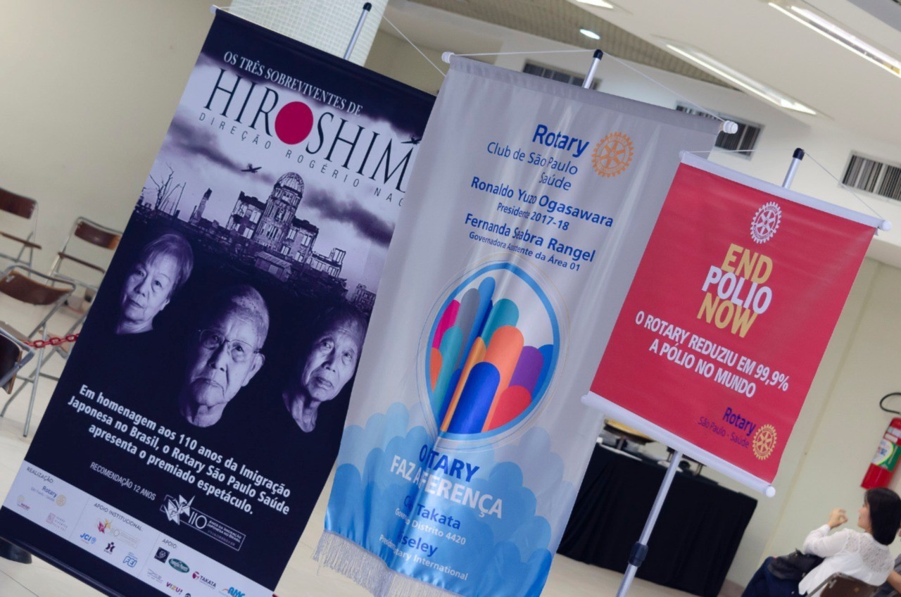 No dia 14 de abril foi apresentado espetáculo Os Três Sobreviventes de Hiroshima no grandioso Teatro do Bunkyo - Sociedade Brasileira de Cultura Japonesa e de Assistência Social à R. São Joaquim, 381 ? Liberdade. A peça já esta em cartaz desde 2013, mas esta apresentação foi muito especial porque a renda líquida será doada à Fundação Rotária para patrocinar projetos humanitários do Rotary International. Mais de 800 pessoas lotaram a plateia e os voluntários do Rotary de São Paulo Saúde se empenharam com afinco; não apenas na divulgação da peça, como também na recepção e acomodação de todos os que assistiram e se encantaram. Os objetivos foram alcançados com amplo sucesso!