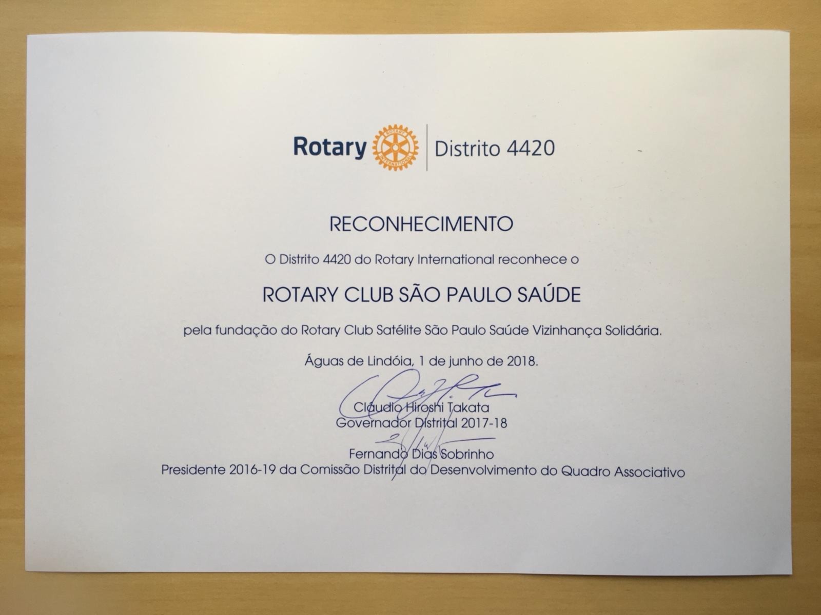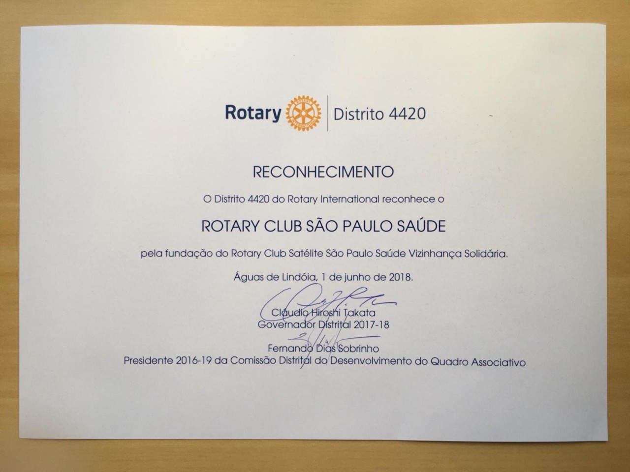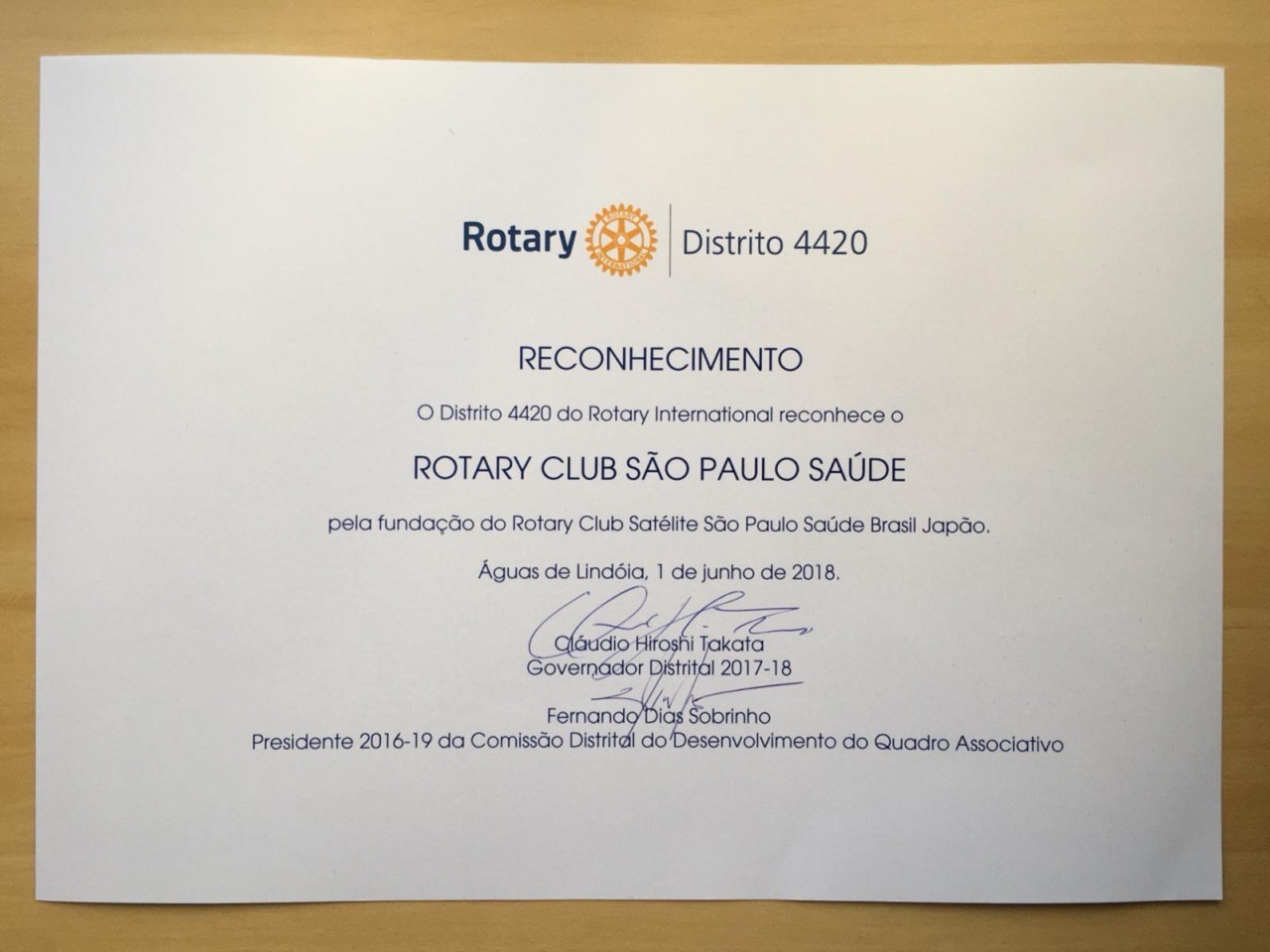 No dia 1 de junho o Rotary de São Paulo Saúde foi homenageado na 27ª. Conferencia do Distrito 4420 ? gestão 2017-2018 pela fundação de 2 (dois) clubes Satélites: Brasil Japão e Vizinhança Solidária.