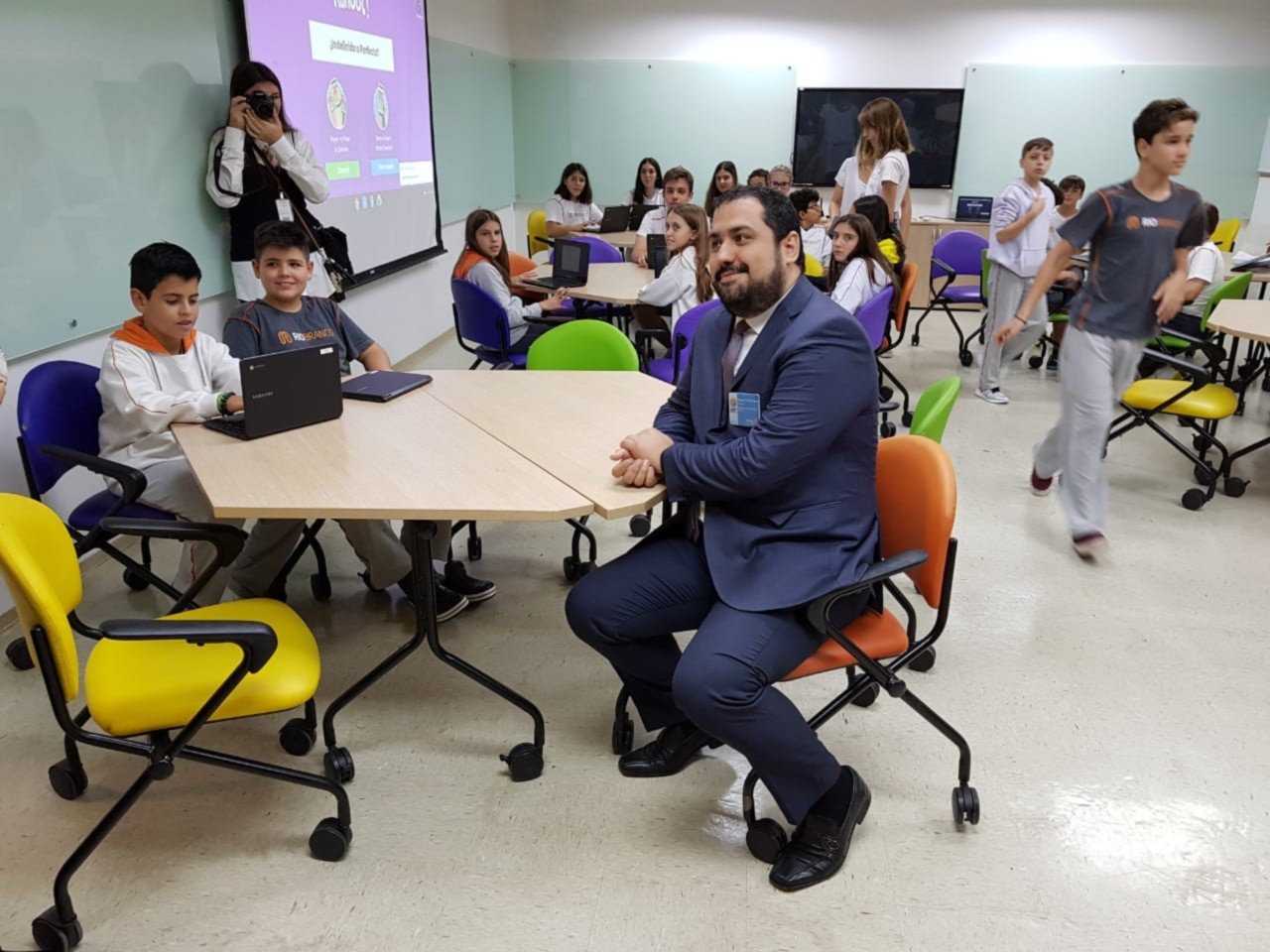 O presidente do Rotary de São Paulo Saúde ? Eric Lieb, visitou no dia no dia 9 de abril o Centro de Educação do Colégio Rio Branco em Cotia e em especial a Sala de Aula para os Alunos com Dificiencia Auditiva.