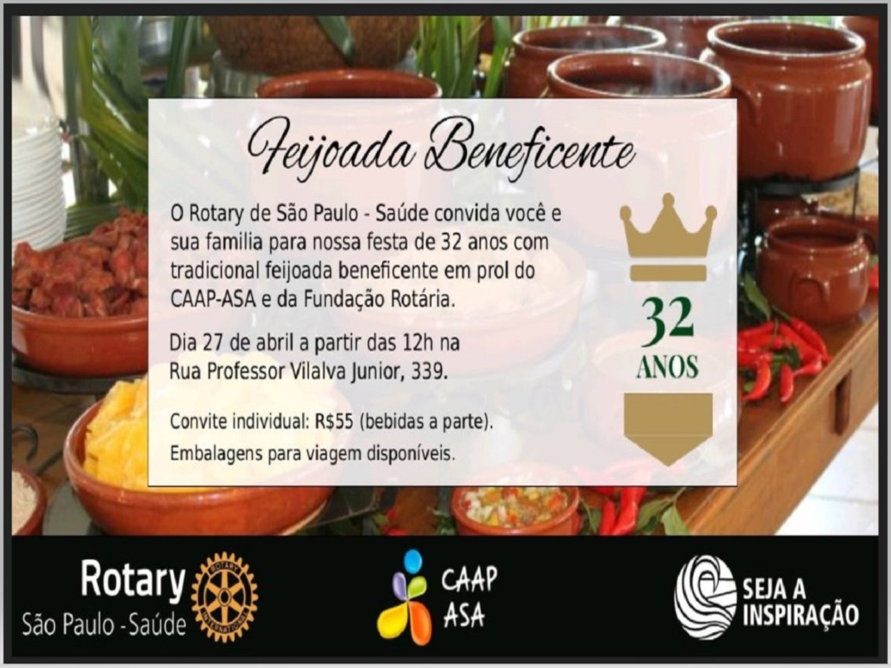 No dia 09 de abril os companheiros do Rotary de São Paulo Saúde reuniram-se para definir os últimos detalhes do evento de aniversário do clube no dia 27 de abril às 12hs no CAAP-ASA à R. Prof. Vilalva Jr, 339. O evento alem das comemorações do Aniversário do Clube será beneficente em prol do CAAP-ASA e Fundação Rotária.